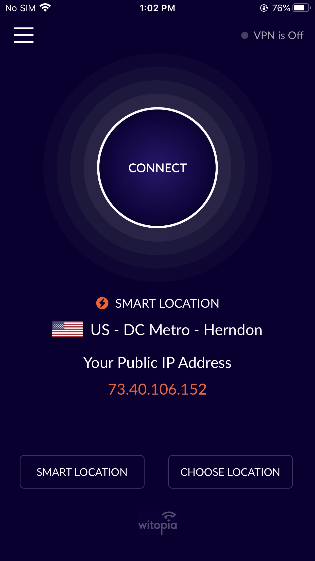 Tap Choose Location to select a specific vpn location. Tap Smart Location to choose the location closest to you.